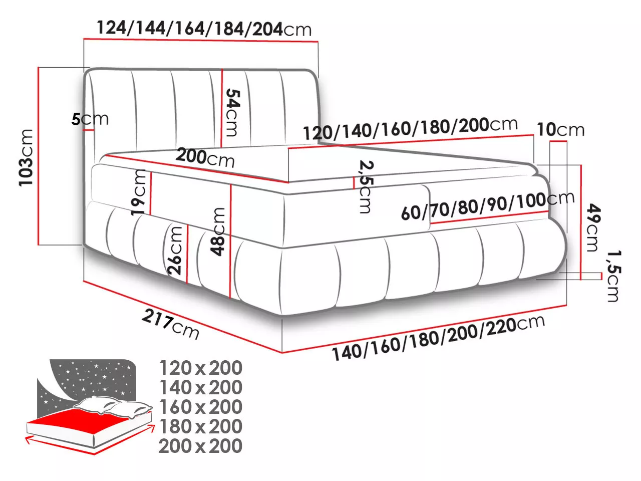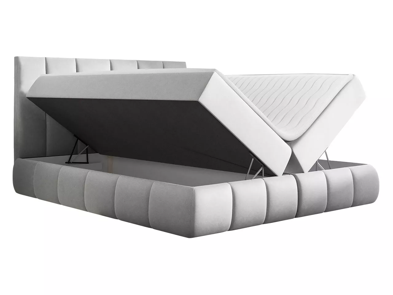 Boxspringová manželská postel VERDA o spací ploše 180x200 je vybavená kvalitní matrací, která se dokonale přizpůsobí přirozeným křivkám vašeho těla a topperem, který zvyšuje pocit pohodlí a relaxace. Výška ložné plochy výrazně usnadňuje vstávání či ulehání do postele, a proto je vhodná i pro osoby s omezenou pohyblivostí. Součástí postele je také dvoukomorový úložný prostor.