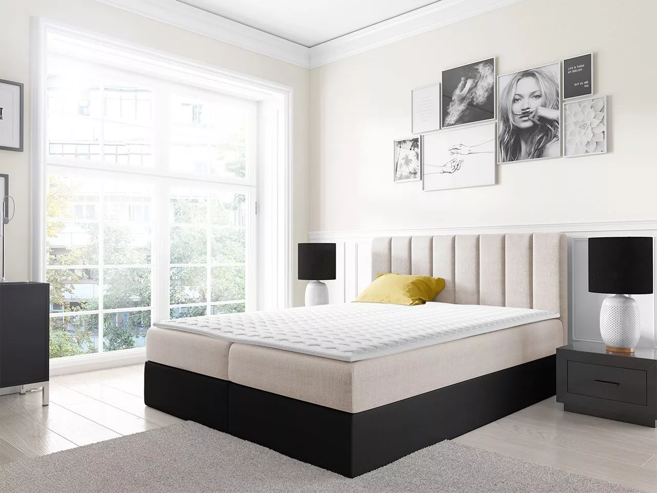 Kontinentální manželská postel 180x200 VICTORO - černá ekokůže / ecru + topper ZDARMA
