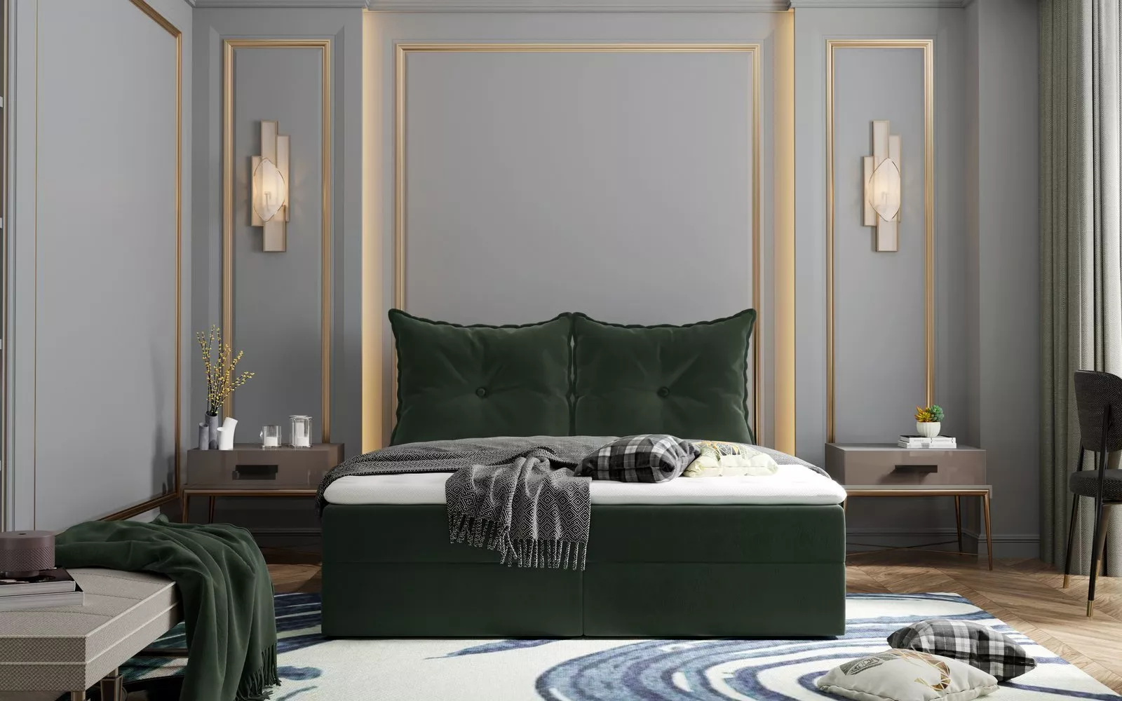 Boxspringová postel PINELOPI - 160x200, tmavě zelená