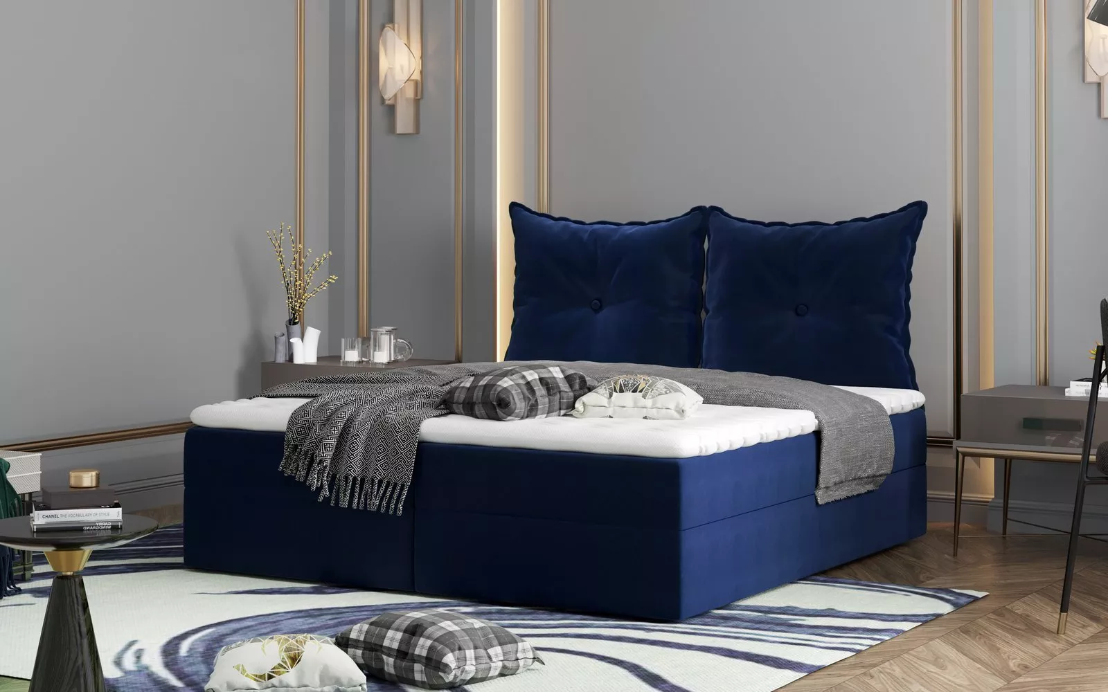 Boxspringová postel PINELOPI - 180x200, modrá