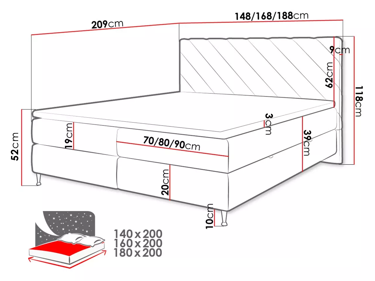 Kontinentální manželská postel SATURNIN je oblíbená pro velkorysý úložný prostor a důmyslné třívrstvé řešení. Postel o spací ploše 180x200 cm přináší vysoký komfort při užívání a zaručuje kvalitní a zdravý spánek. Vysoké elegantní čelo zajistí pohodlnou opěru zad, a zároveň chrání stěnu před znečištěním.