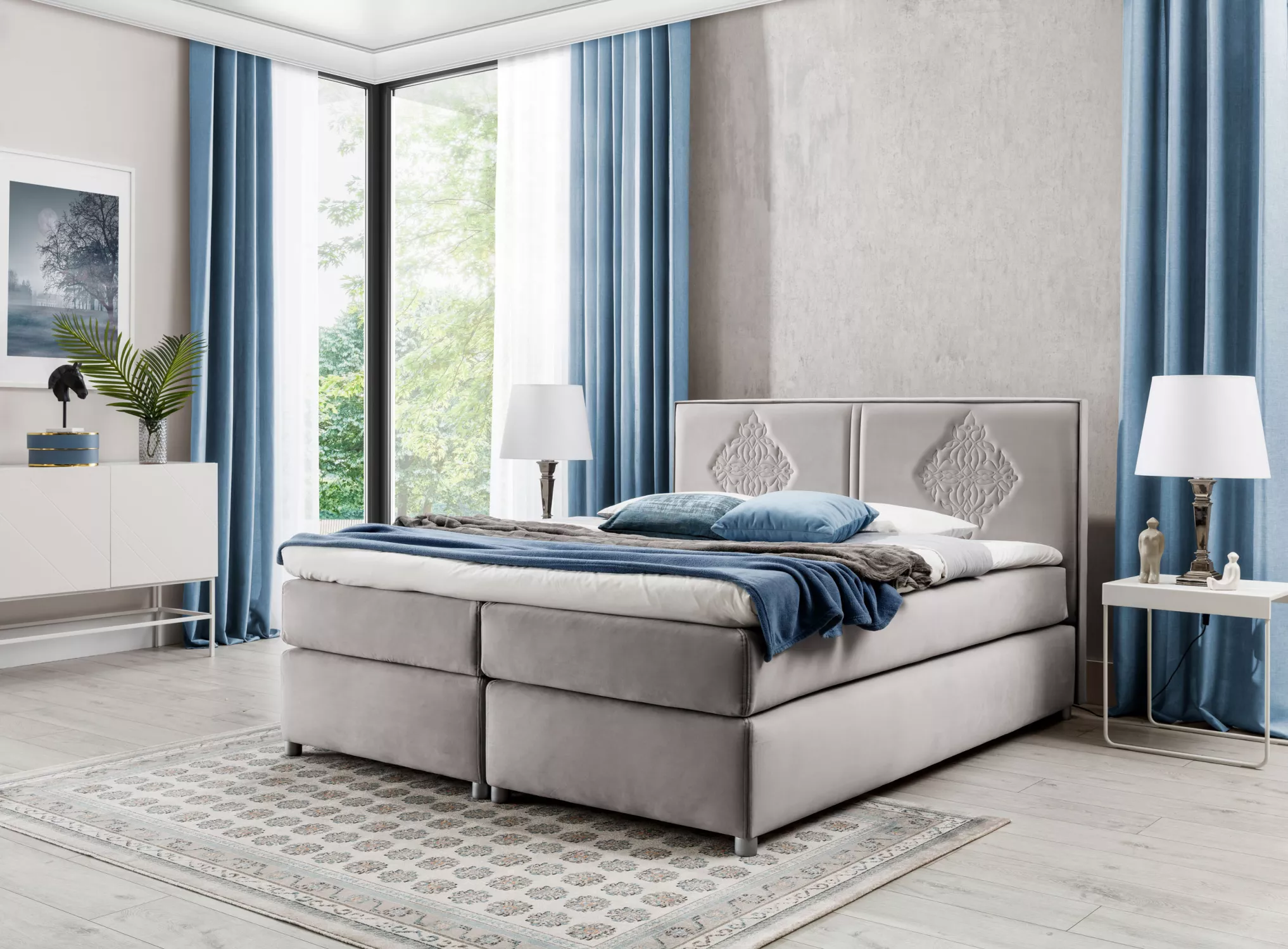 Boxspringová postel AUGUSTA dokonale zapadne do interiéru každé ložnice. Díky vestavěné matraci a topperu zajišťuje pohodlí při spánku.
