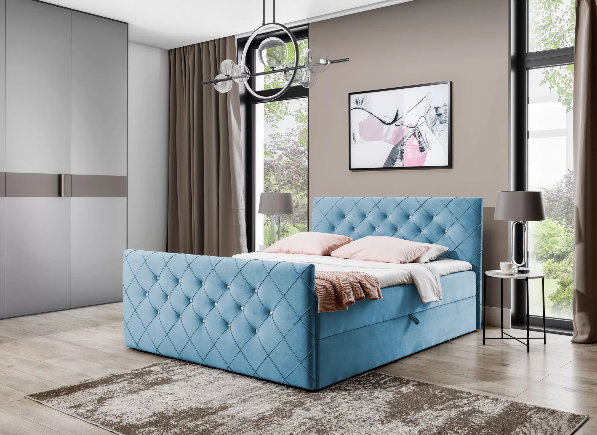 Boxspringová postel LENKA dokonale zapadne do interiéru každé ložnice. Vestavěná matrace a topper zajišťují pohodlí při spánku.