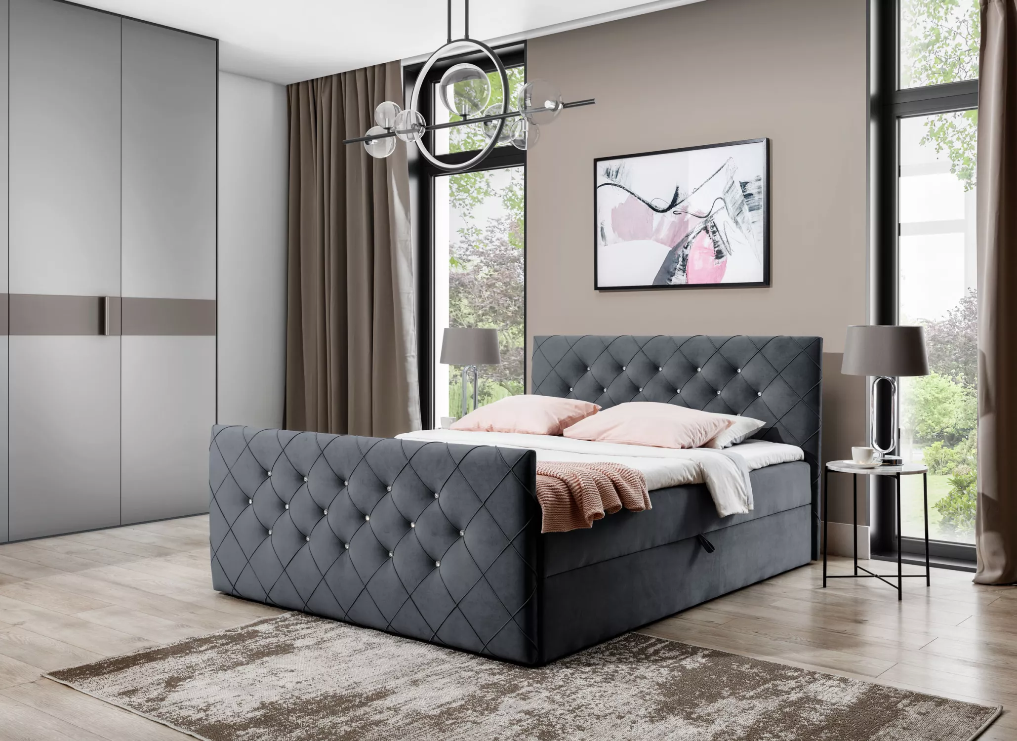 Boxspringová postel LENKA dokonale zapadne do interiéru každé ložnice. Vestavěná matrace a topper zajišťují pohodlí při spánku.