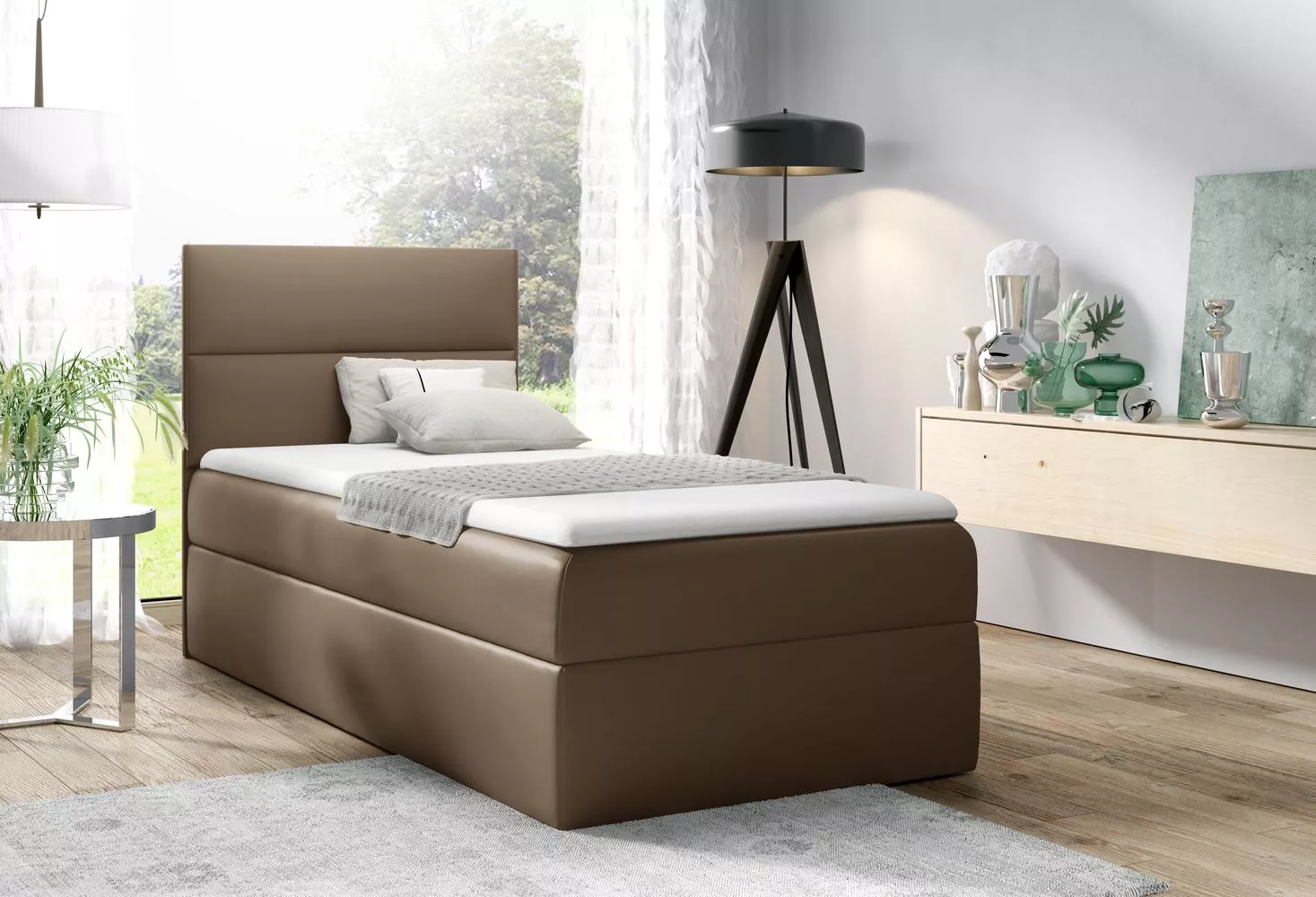 Čalouněná jednolůžková postel OLENA - 80x200, hnědá + topper ZDARMA
