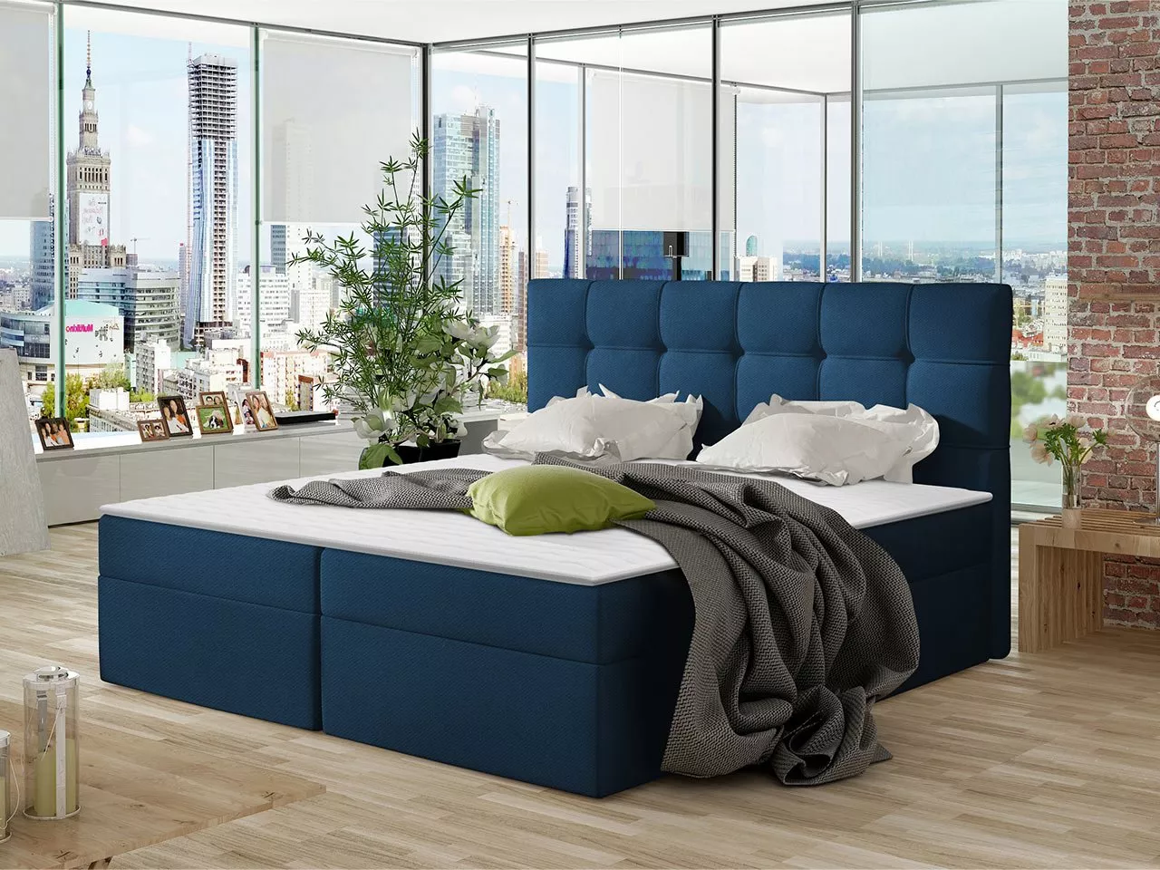 Boxspringová manželská postel 160x200 CLARA - modrá + topper ZDARMA