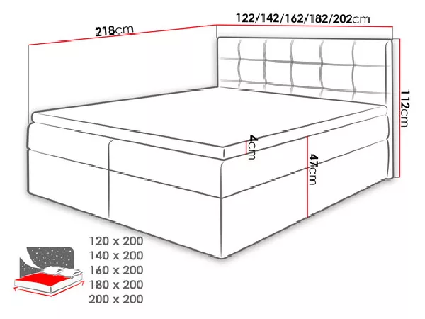 - ložná plocha: 160x200 cm