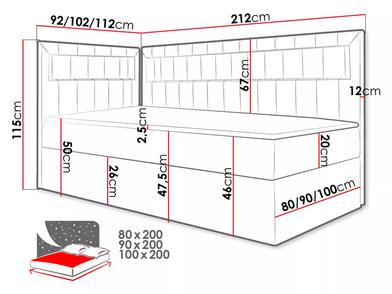 - provedení postele: pravé (přístup k úložnému prostoru z pravé strany)