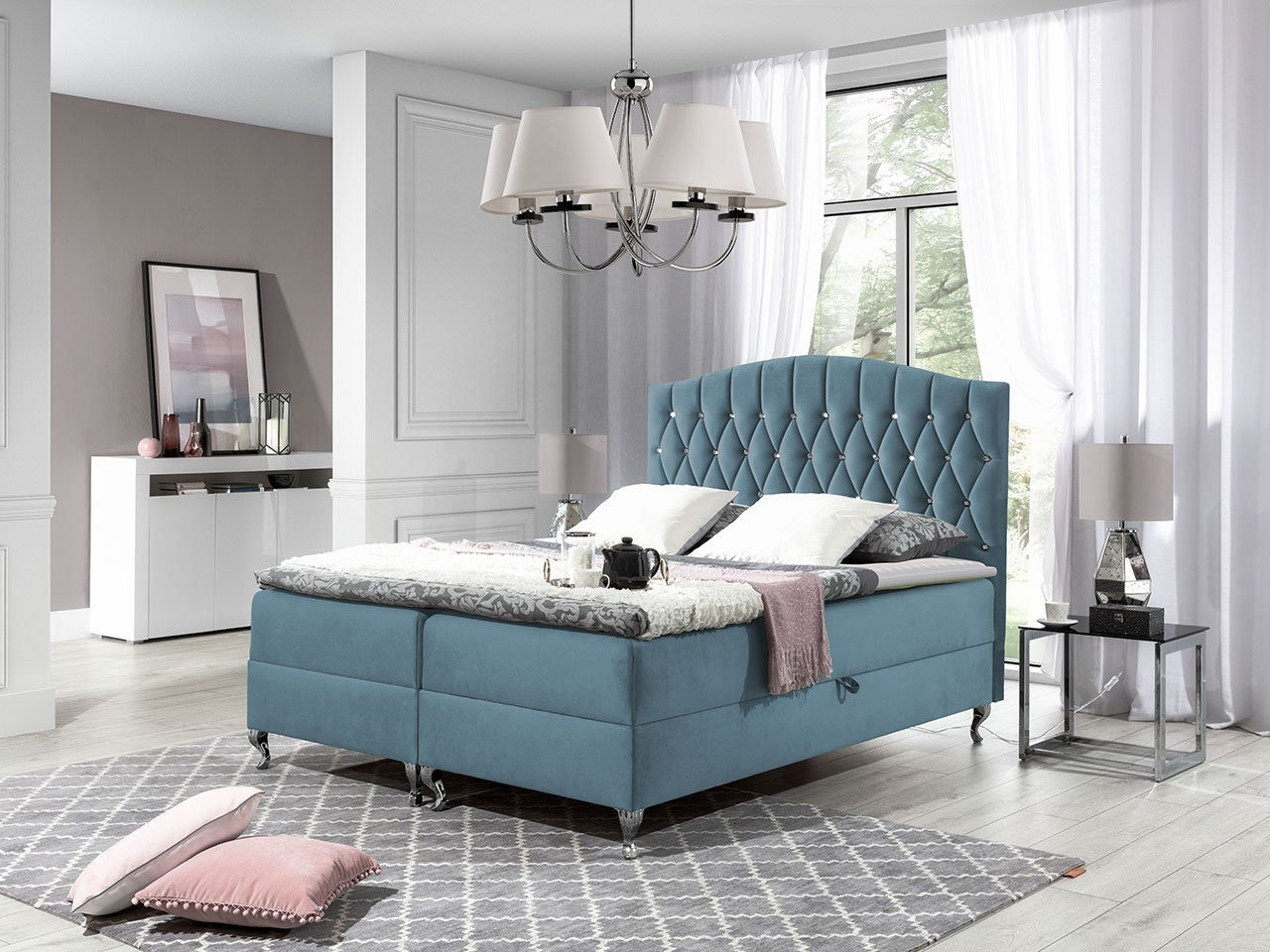 Boxspringová manželská postel 160x200 TERCERO - modrá + topper ZDARMA