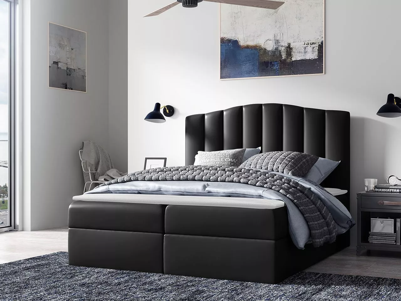 Boxspringová manželská postel 140x200 REYA - černá ekokůže + topper ZDARMA