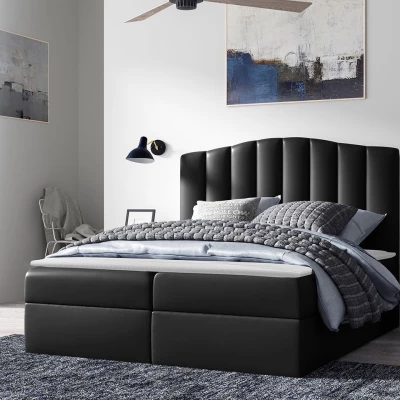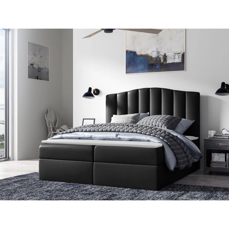 Boxspringová manželská postel 180x200 REYA - černá ekokůže + topper ZDARMA