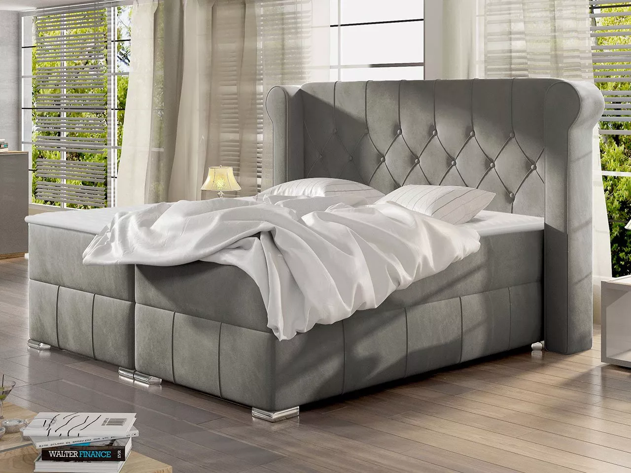 Hotelová dvojlůžková postel 180x200 RUFIO - šedá + topper ZDARMA