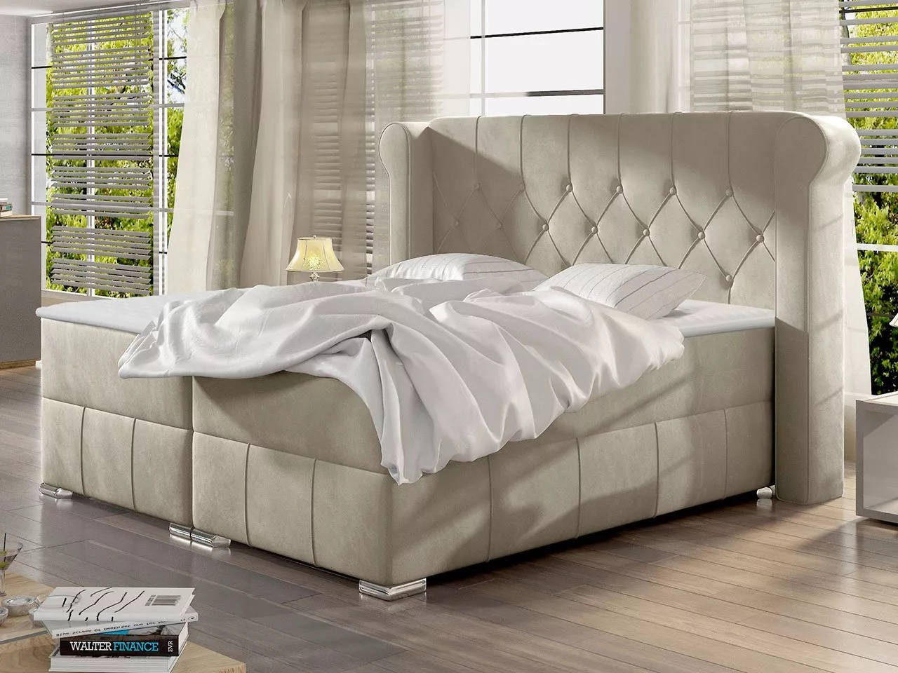 Hotelová dvojlůžková postel 200x200 RUFIO - béžová + topper ZDARMA
