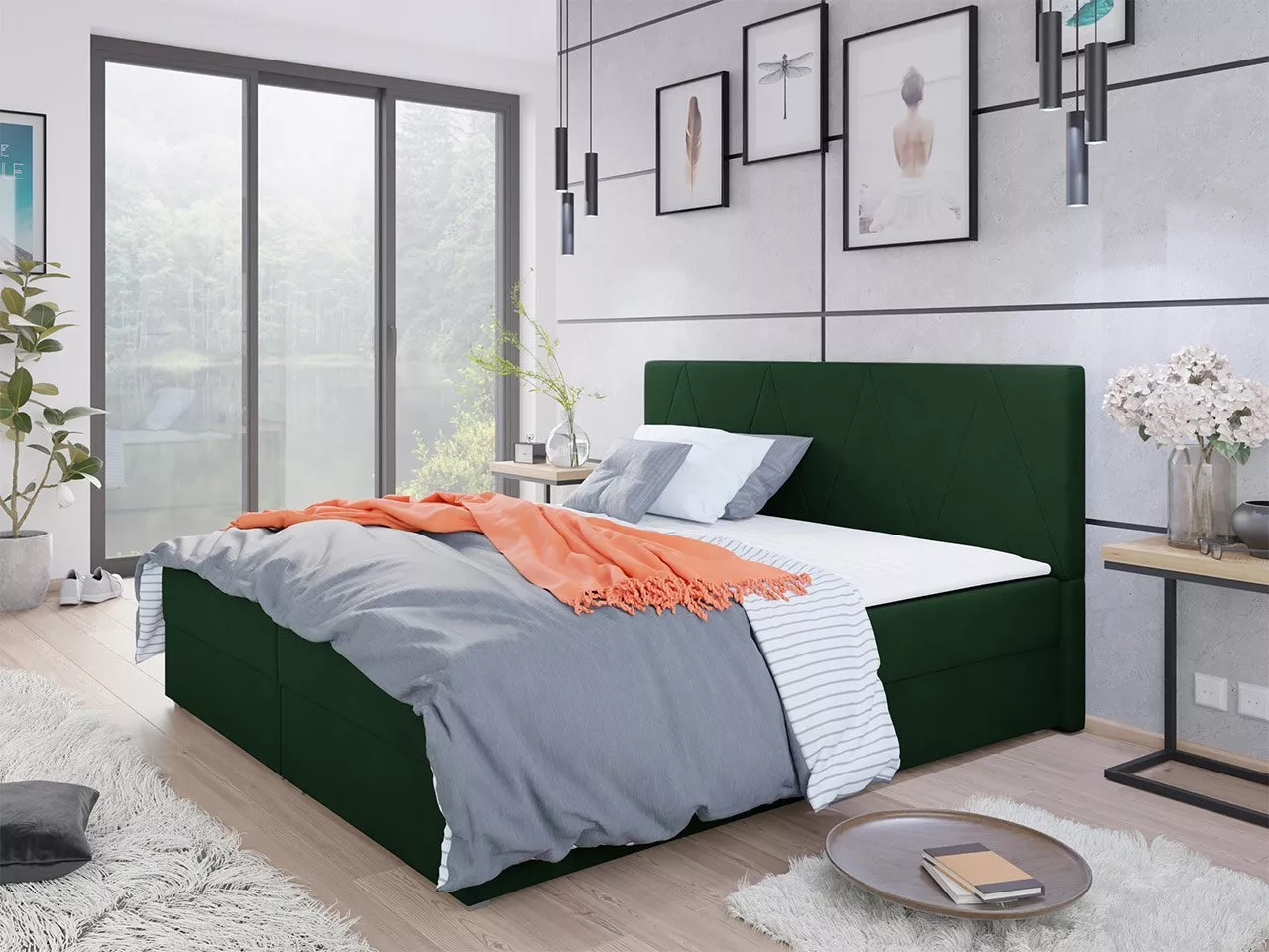 Americká manželská postel 160x200 BALJA 3 - zelená + topper ZDARMA