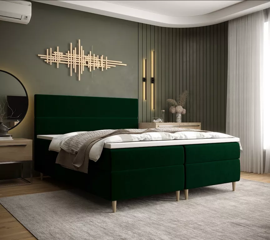 Boxspringová postel ANGELES - 200x200, tmavě zelená
