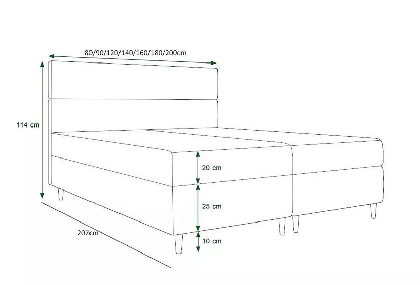 Boxspringová postel ANGELES se hodí do všech moderních ložnic. Čalouněné čelo zamezí poškrábání a zašpinění zdi. Postel disponuje úložným prostorem rozděleným na 2 části.