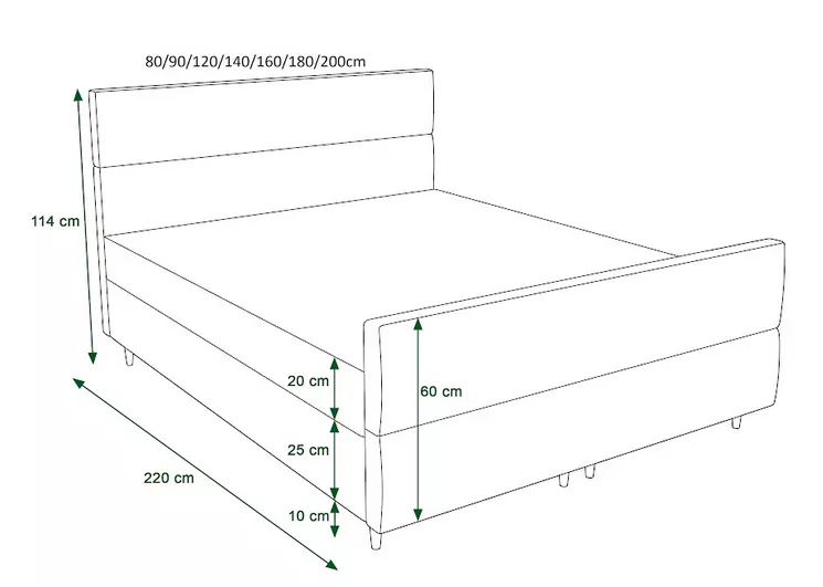 Boxspringová postel ANGELES PLUS COMFORT se hodí do všech moderních ložnic. Čalouněné čelo zamezí poškrábání a zašpinění zdi. Postel disponuje 2 úložnými prostory, které jsou umístěné pod vyklápěcími rošty.