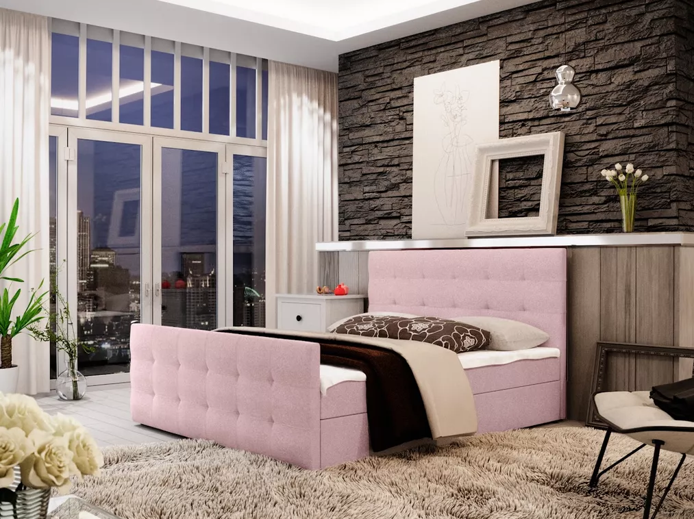 Boxspringová manželská postel VASILISA 2 - 140x200, růžová