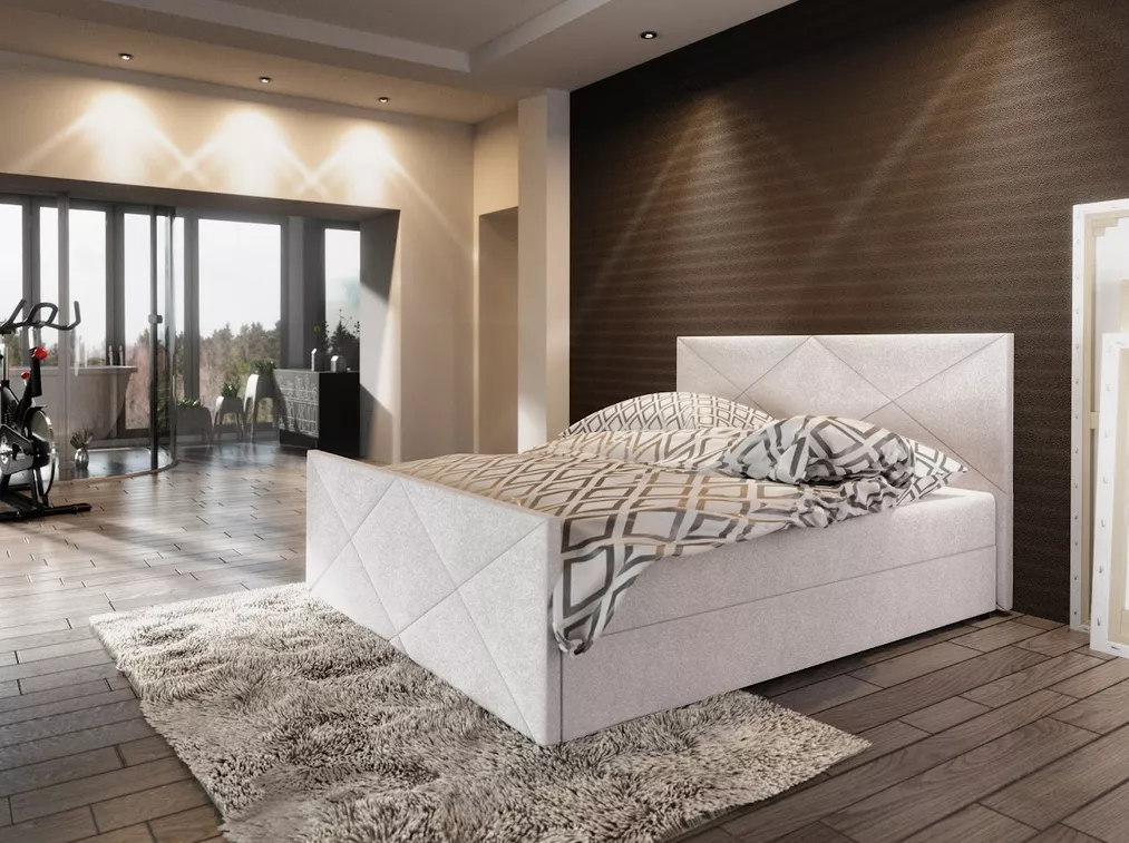 Boxspringová manželská postel VASILISA 4 se hodí do všech moderních ložnic. Čalouněné čelo zamezí poškrábání a zašpinění zdi. Postel disponuje 2 úložnými prostory, které jsou umístěné pod vyklápěcími rošty.
