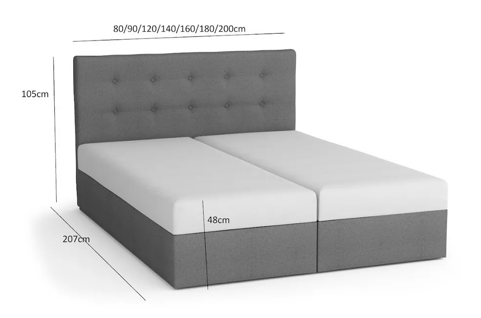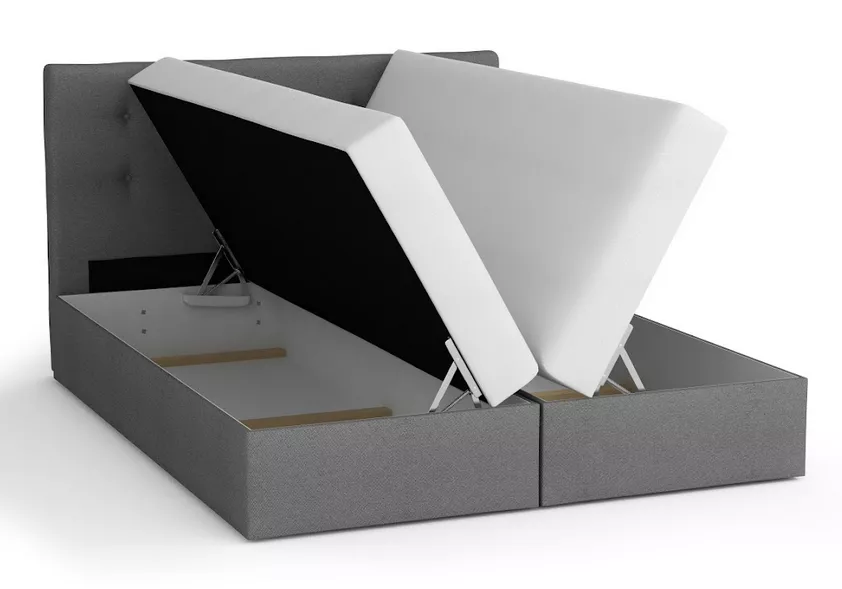 Boxspringová postel s úložným prostorem PURAM se hodí do všech moderních ložnic. Čalouněné čelo zamezí poškrábání a zašpinění zdi. Postel disponuje 2 úložnými prostory, které jsou umístěné pod vyklápěcími rošty.