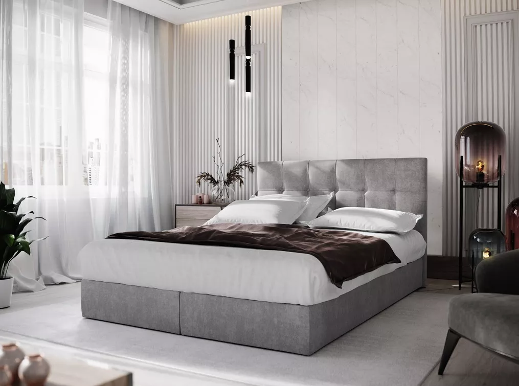Boxspringová postel s úložným prostorem PURAM - 200x200, šedá
