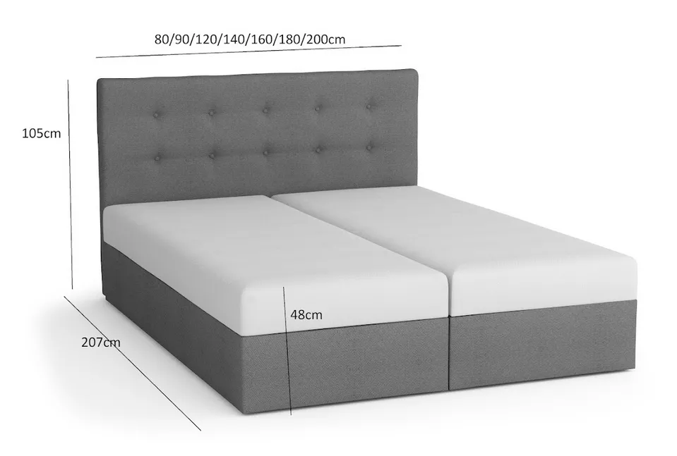 Boxspringová postel WALLY nabízí kvalitní odpočinek. Čalouněné čelo zamezí poškrábaní a zašpinění zdi. Disponuje 2 úložnými prostory pod výklopnými rošty.