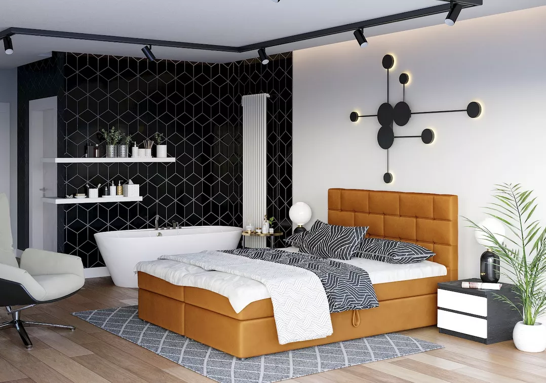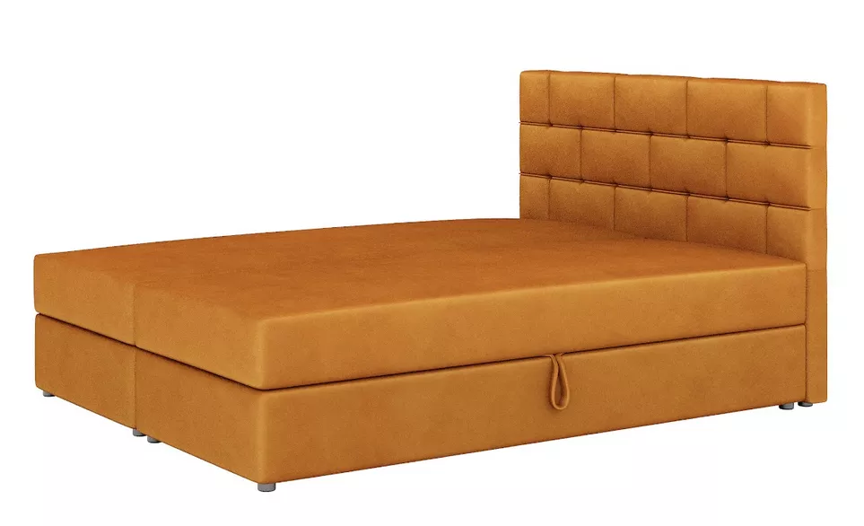 Boxspringová postel s úložným prostorem WALLY - 200x200, hořčicová