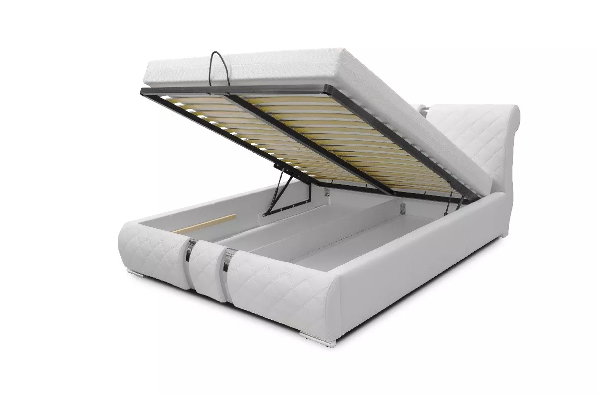 Luxusní čalouněné jednolůžko LUKA s vysokým čelem a úložným prostorem bílá eko kůže 120x200