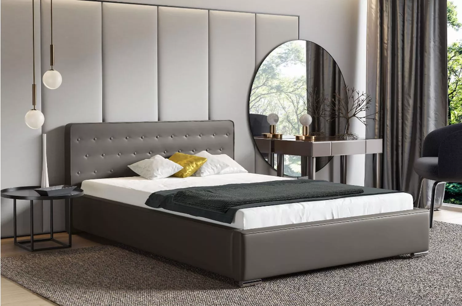 Moderní celočalouněná postel BERGEN upoutá působivým lemováním podél hran. To kontrastuje s precizně vypnutými potahy. Dominantou je beze sporu 92 cm vysoké čelo u hlavy, u kterého designéři sázejí na kombinaci zakulacených rohů a prošívání doplněné o ozdobné knoflíky. Celkový dojem vyzařuje komfort a láká k pohodlnému opření se a lenošení vsedě u zajímavého filmu nebo