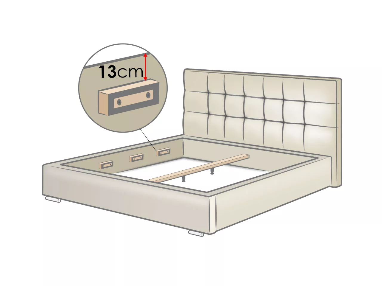 Jednolůžková postel PALIGEN 2 o spací ploše 120x200 cm se vyznačuje měkkým čelem s ozdobným prošíváním. Pevná kovová konstrukce roštu zajistí stabilitu postele, zatímco měkké pěnové hrany eliminují riziko bolestivého nárazu. Samozřejmostí je dvoukomorový úložný prostor na lůžkoviny.