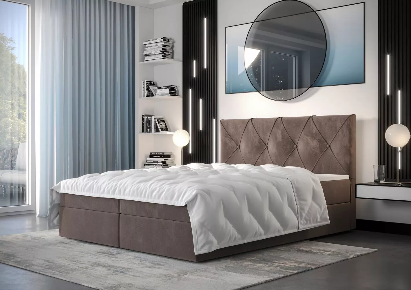 Kontinentální postel LILIEN je vybavena módním a měkkým čelem, které poskytuje příjemný komfort při čtení knih nebo sledování televize. Postel o spací ploše 160x200 cm je vyrobena z kvalitních komponentů, které zodpovídají za zdravý spánek a pocit relaxace. Nechybí ani praktický úložný dvoukomorový úložný prostor na lůžkoviny.