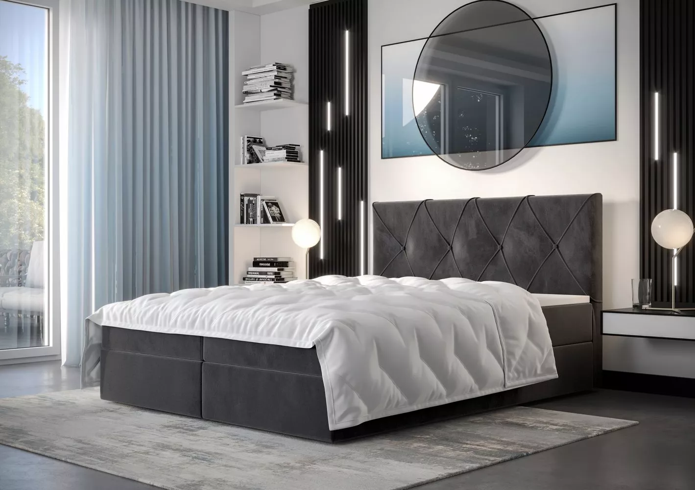 Kontinentální postel LILIEN je vybavena módním a měkkým čelem, které poskytuje příjemný komfort při čtení knih nebo sledování televize. Postel o spací ploše 160x200 cm je vyrobena z kvalitních komponentů, které zodpovídají za zdravý spánek a pocit relaxace. Nechybí ani praktický úložný dvoukomorový úložný prostor na lůžkoviny.