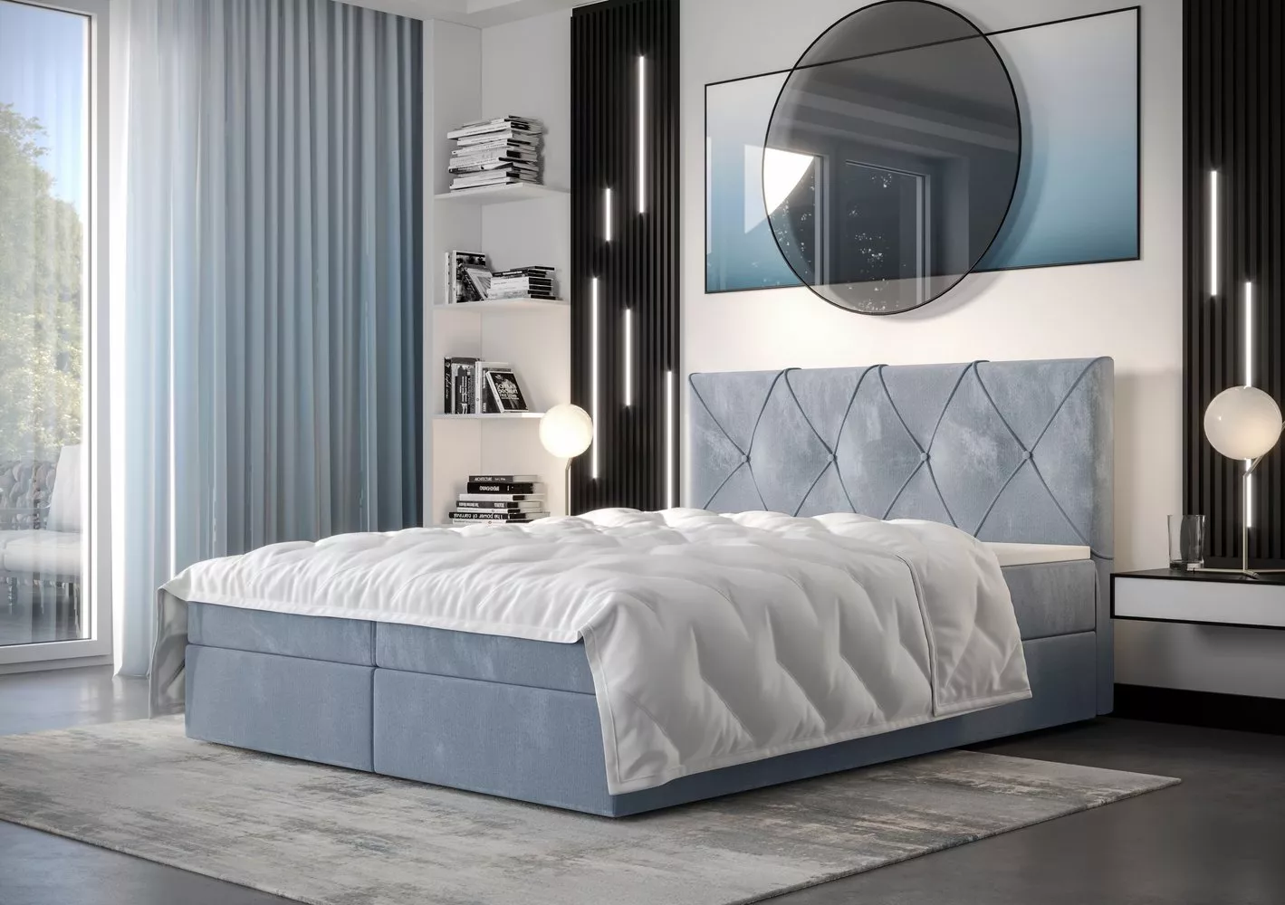 Kontinentální postel LILIEN je vybavena módním a měkkým čelem, které poskytuje příjemný komfort při čtení knih nebo sledování televize. Postel o spací ploše 180x200 cm je vyrobena z kvalitních komponentů, které zodpovídají za zdravý spánek a pocit relaxace. Nechybí ani praktický úložný dvoukomorový úložný prostor na lůžkoviny.