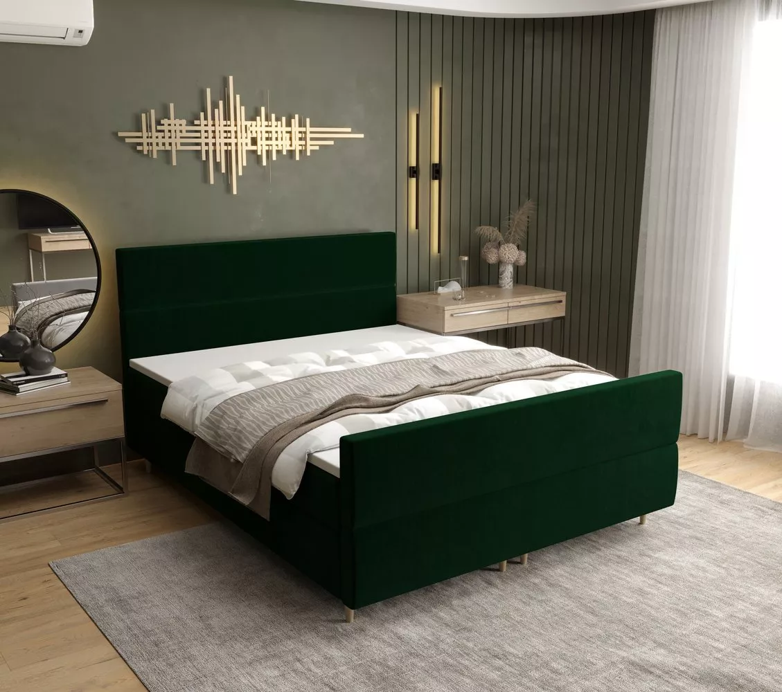 Kontinentální manželská postel ANGELES PLUS - 180x200, tmavě zelená