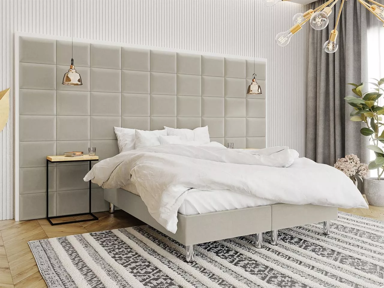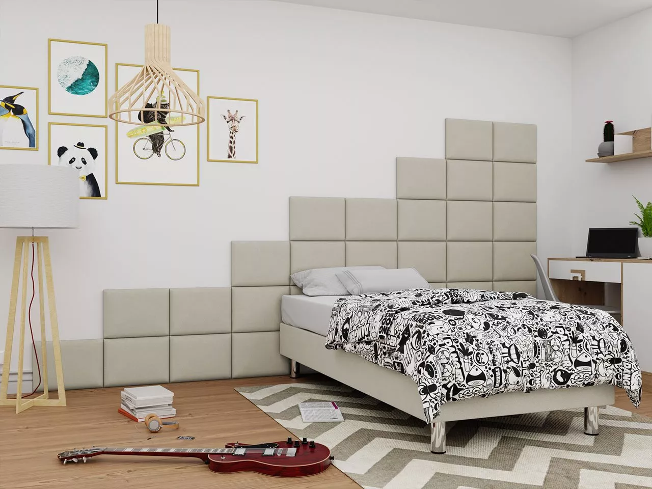 Čalouněný nástěnný panel PAG zlepšuje vizuální vzhled místností, zvyšuje komfort při odpočinku, výborně tepelně a akusticky izoluje a po umístění do dětského pokoje zajistí bezpečnost při hraní vašeho dítěte. Čalouněný panel je vyroben z kvalitní nábytkové desky pokryté další vrstvou měkké pěny a odolného materiálu.