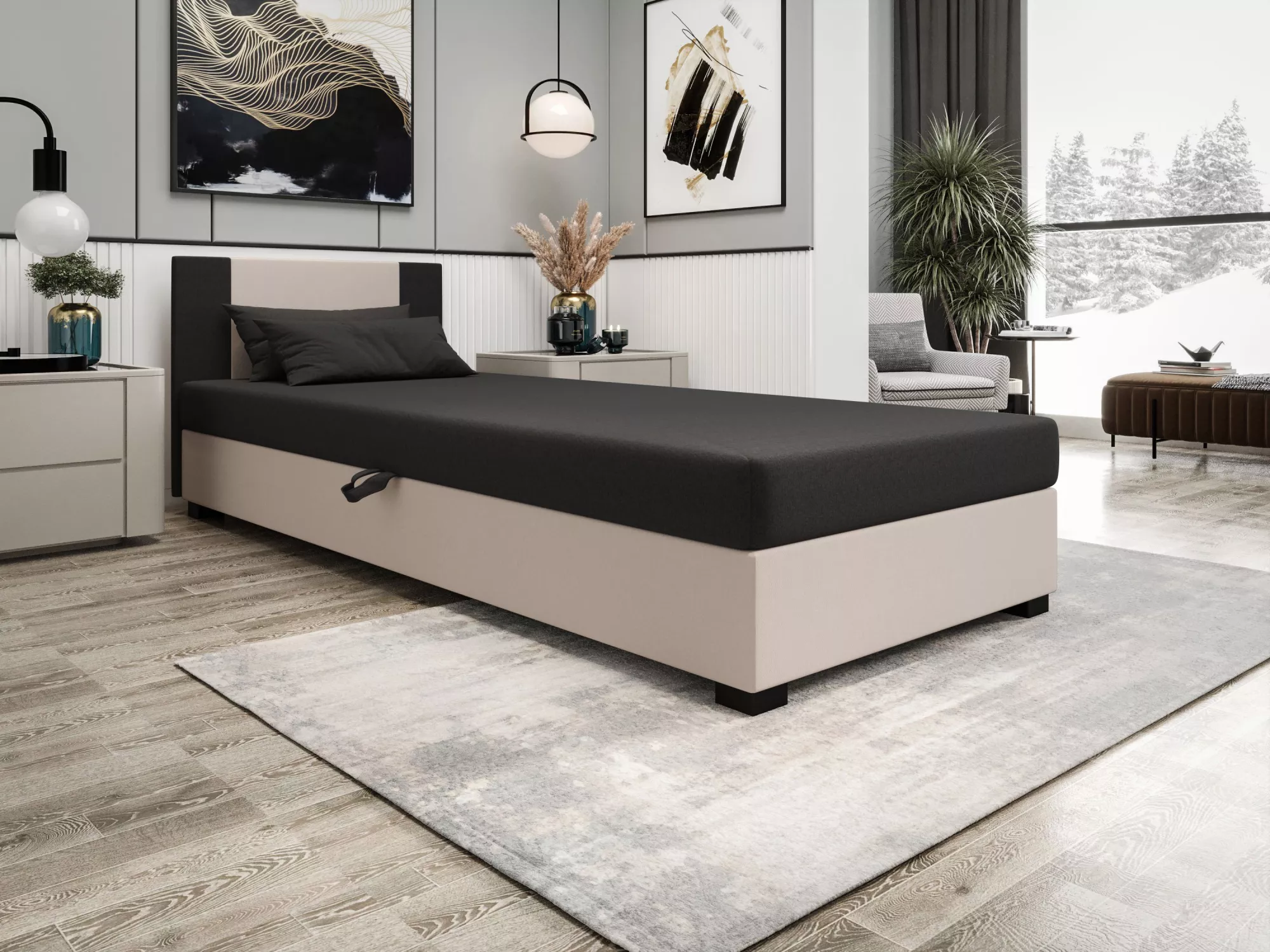 Čalouněná jednolůžková postel 80x195 ARIADNA 1 disponuje pohodlnou matrací, která zpříjemní každou chvíli odpočinku. Postel nabízí praktický úložný prostor pro uložení sezónního oblečení nebo ložního prádla. Příjemná potahová látka zvýší komfort používání.