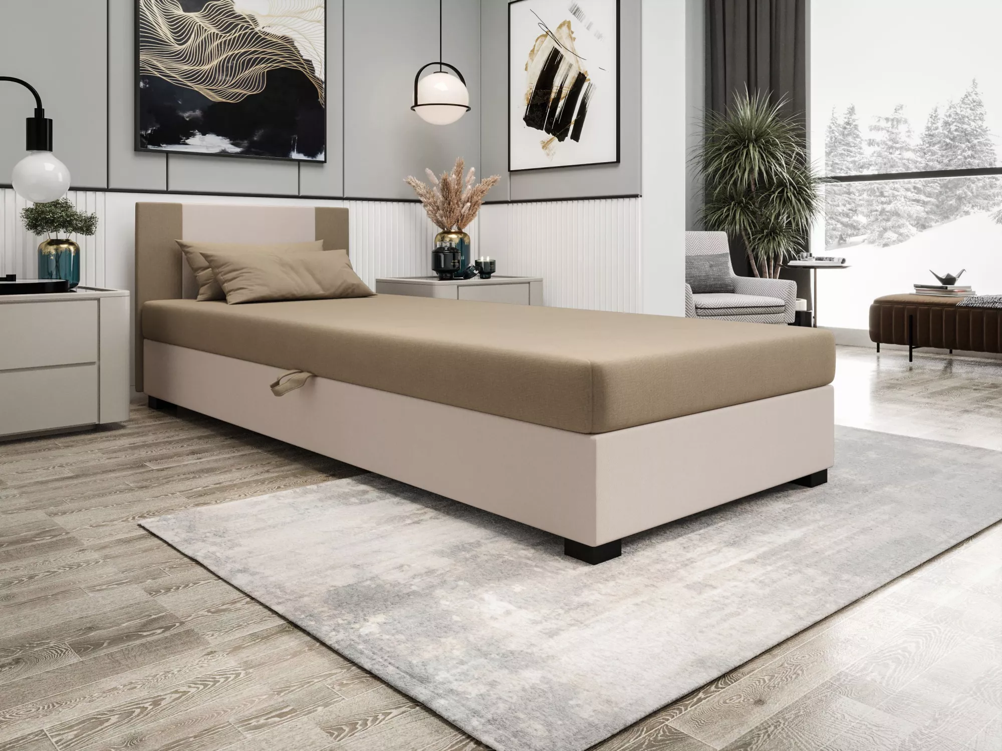 Čalouněná jednolůžková postel 80x195 ARIADNA 1 disponuje pohodlnou matrací, která zpříjemní každou chvíli odpočinku. Postel nabízí praktický úložný prostor pro uložení sezónního oblečení nebo ložního prádla. Příjemná potahová látka zvýší komfort používání.