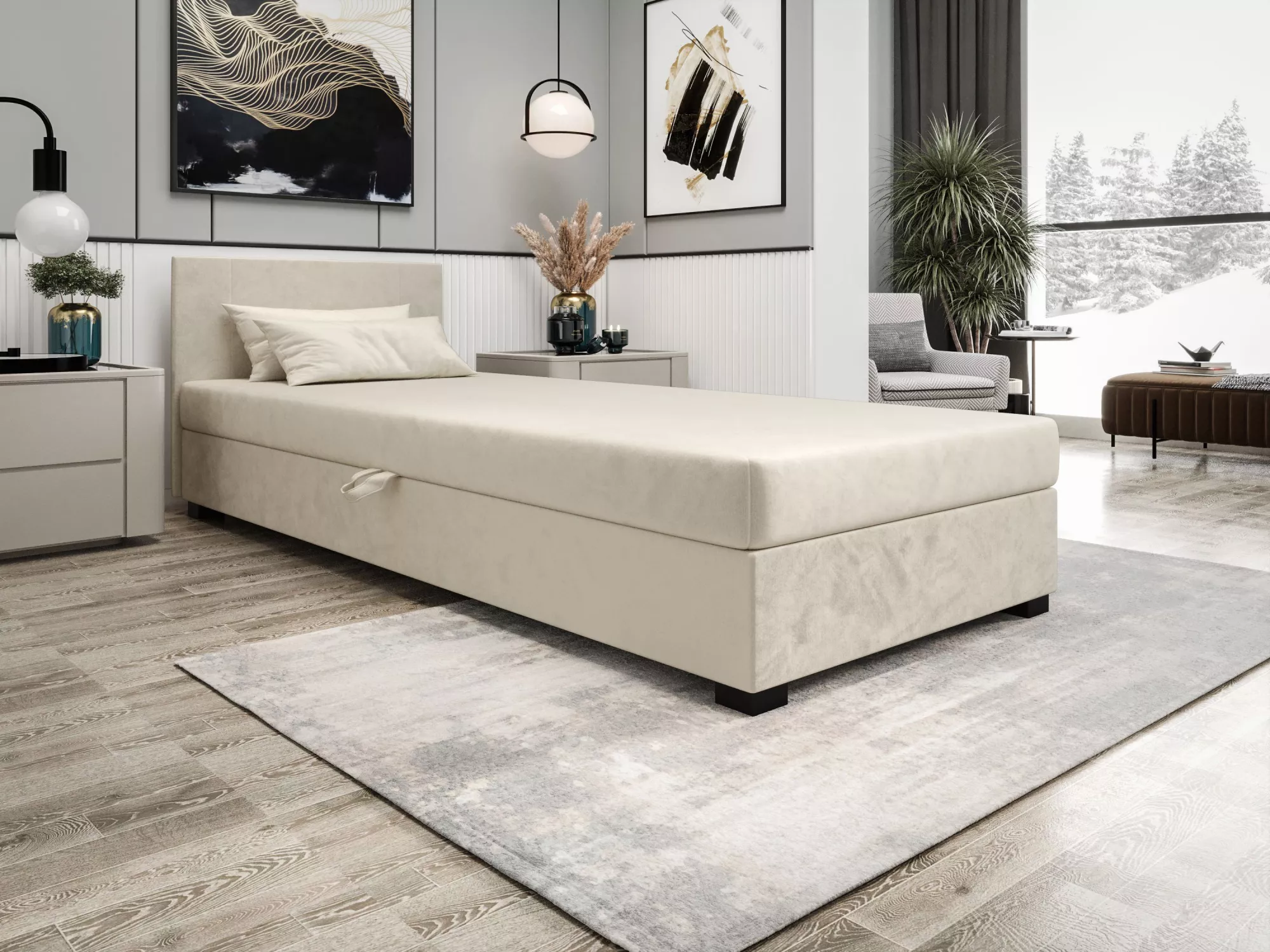 Čalouněná jednolůžková postel 80x195 ARIADNA 1 disponuje pohodlnou matrací, která zpříjemní každou chvíli odpočinku. Postel nabízí praktický úložný prostor pro uložení sezónního oblečení nebo ložního prádla. Příjemná potahová látka zvýší komfort používání.