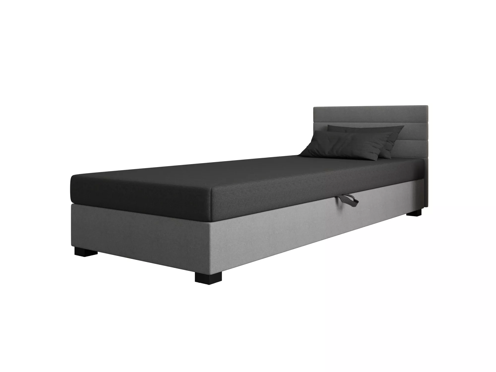 Čalouněná postel 110x195 KASANDRA 2 s úložným prostorem svým jednoduchým minimalistickým designem zapadne do každého studentského pokoje. Vysoké čalouněné čelo zabrání poškrábání a zašpinění zdi.