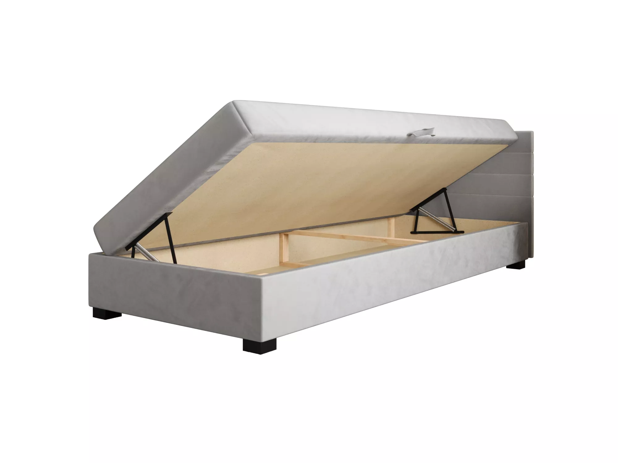 Čalouněná postel 110x195 KASANDRA 2 s úložným prostorem svým jednoduchým minimalistickým designem zapadne do každého studentského pokoje. Vysoké čalouněné čelo zabrání poškrábání a zašpinění zdi.