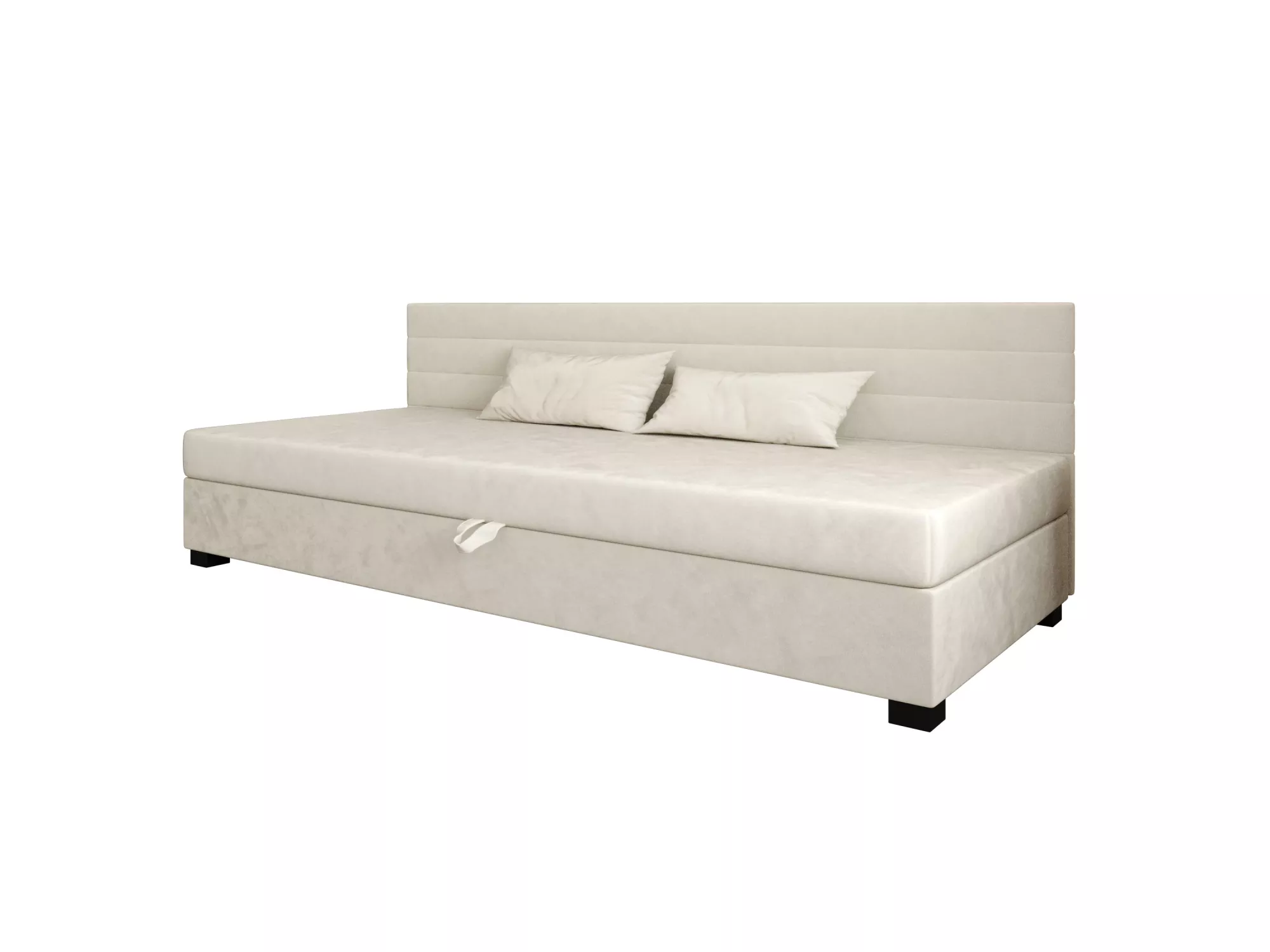 Čalouněná postel 110x195 KASANDRA BIZ 1 s úložným prostorem svým jednoduchým minimalistickým designem zapadne do každého studentského pokoje. Vysoké čalouněné čelo zabrání poškrábání a zašpinění zdi.