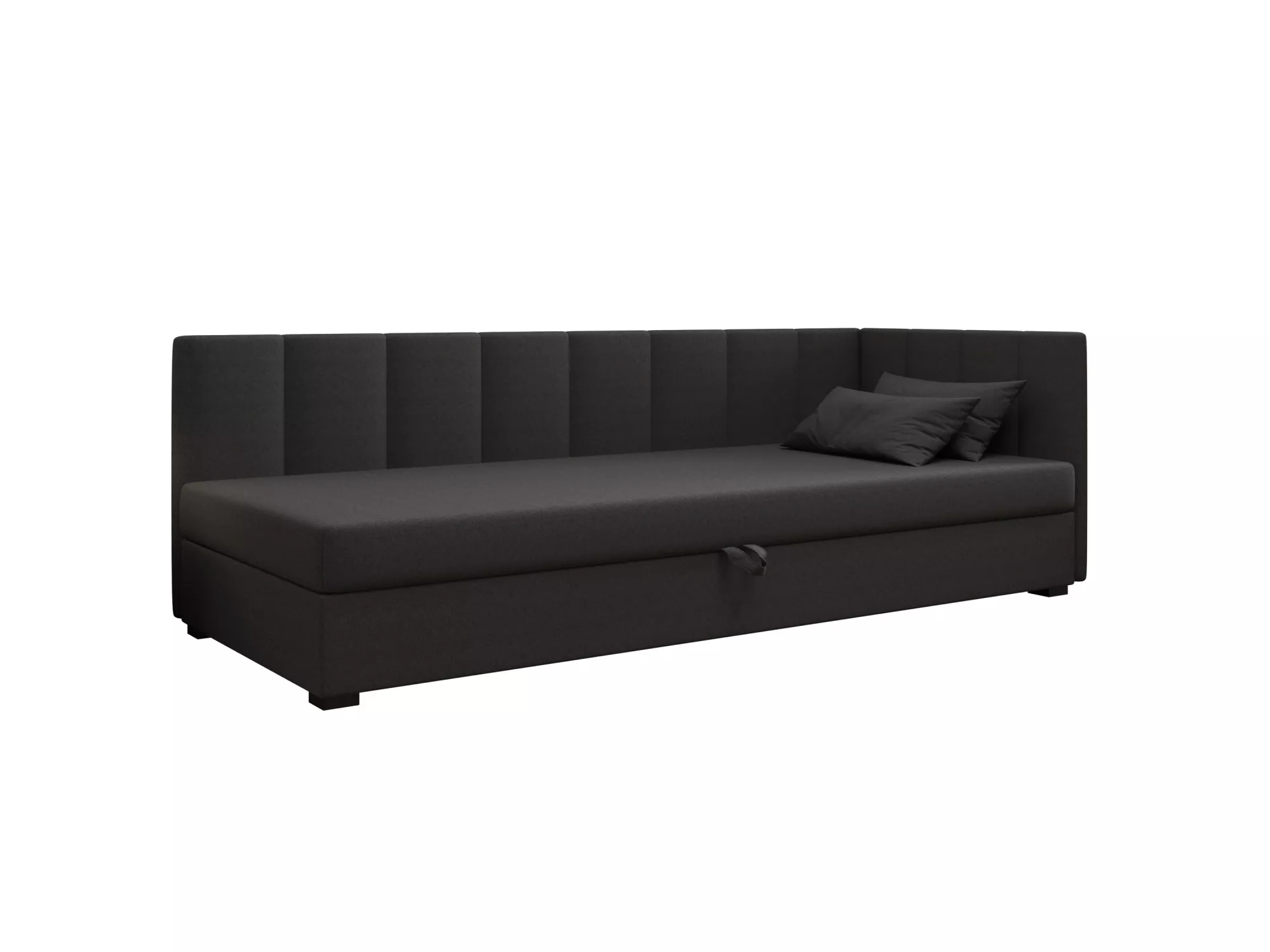 Jednolůžková postel 90x195 MANKA PLUS 2 disponuje vysokým čalouněným čelem, které zabrání zašpinění a poškrábání zdi. Postel nabízí také praktický úložný prostor pro uložení lůžkovin nebo sezónního oblečení. Příjemná potahová látka zvyšuje komfort při odpočinku.
