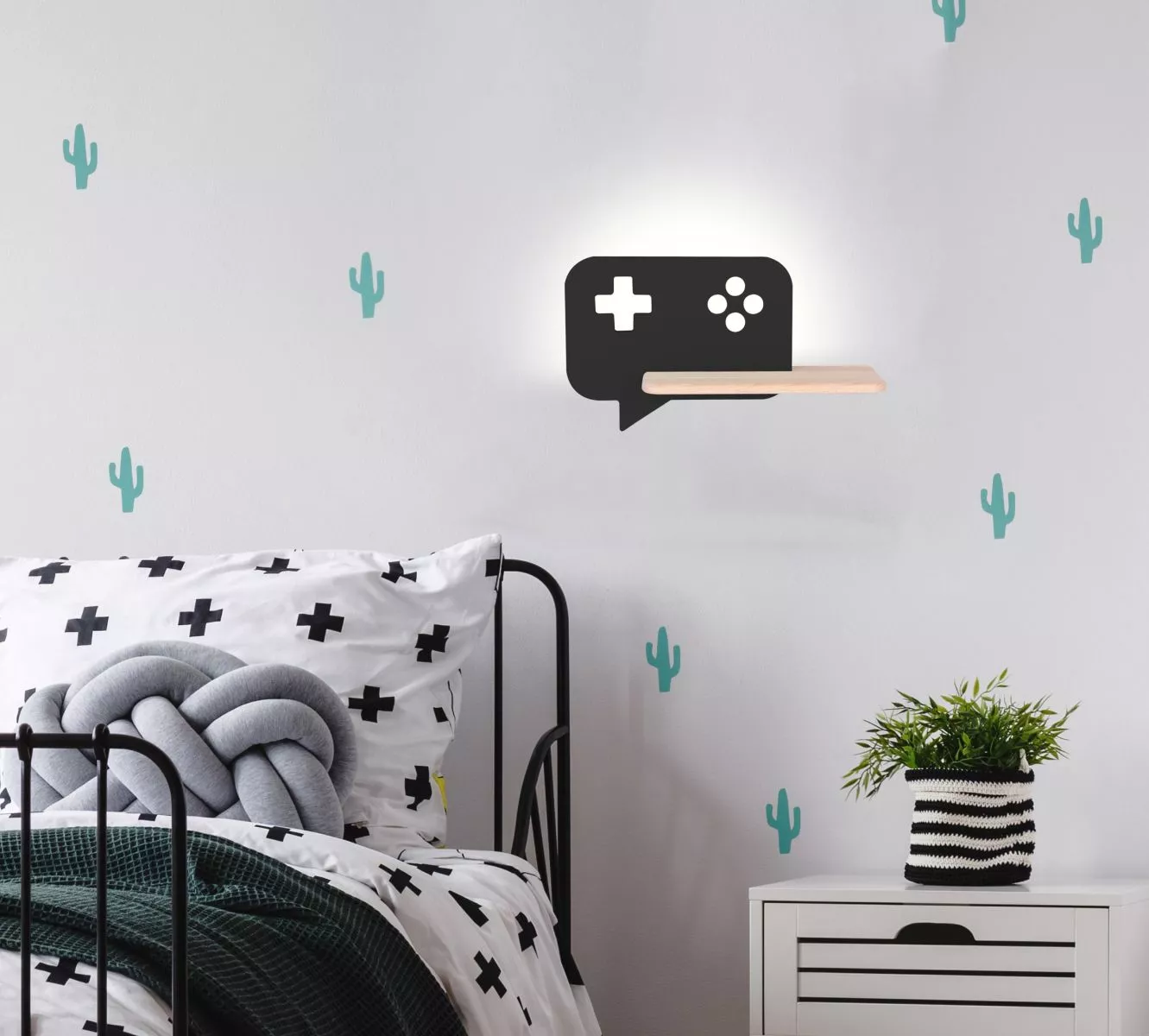 Potěšte malého hráče nástěnným svítidlem CONSOLE, jehož hravý design ve tvaru herní konzole oživí každý dětský pokoj. Pevná konstrukce svítidla je chytře doplněna o praktickou poličku, která slouží k odkládání knih nebo drobných hraček. Díky dennímu bílému světlu o teplotě 4000 K je ideální k posteli pro čtení nebo jako noční světlo. Krytí IP20 značí vhodnost použití v interiéru.