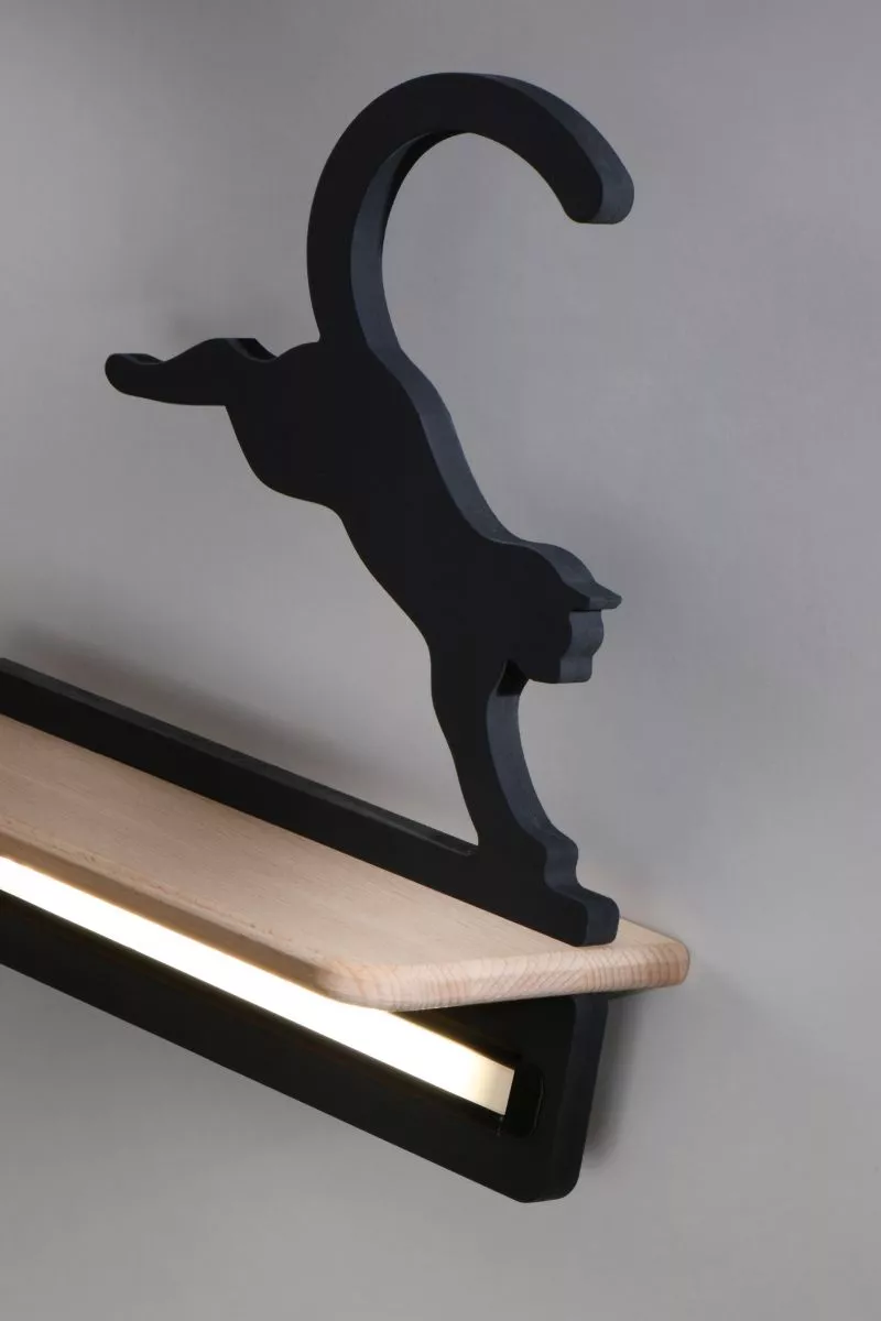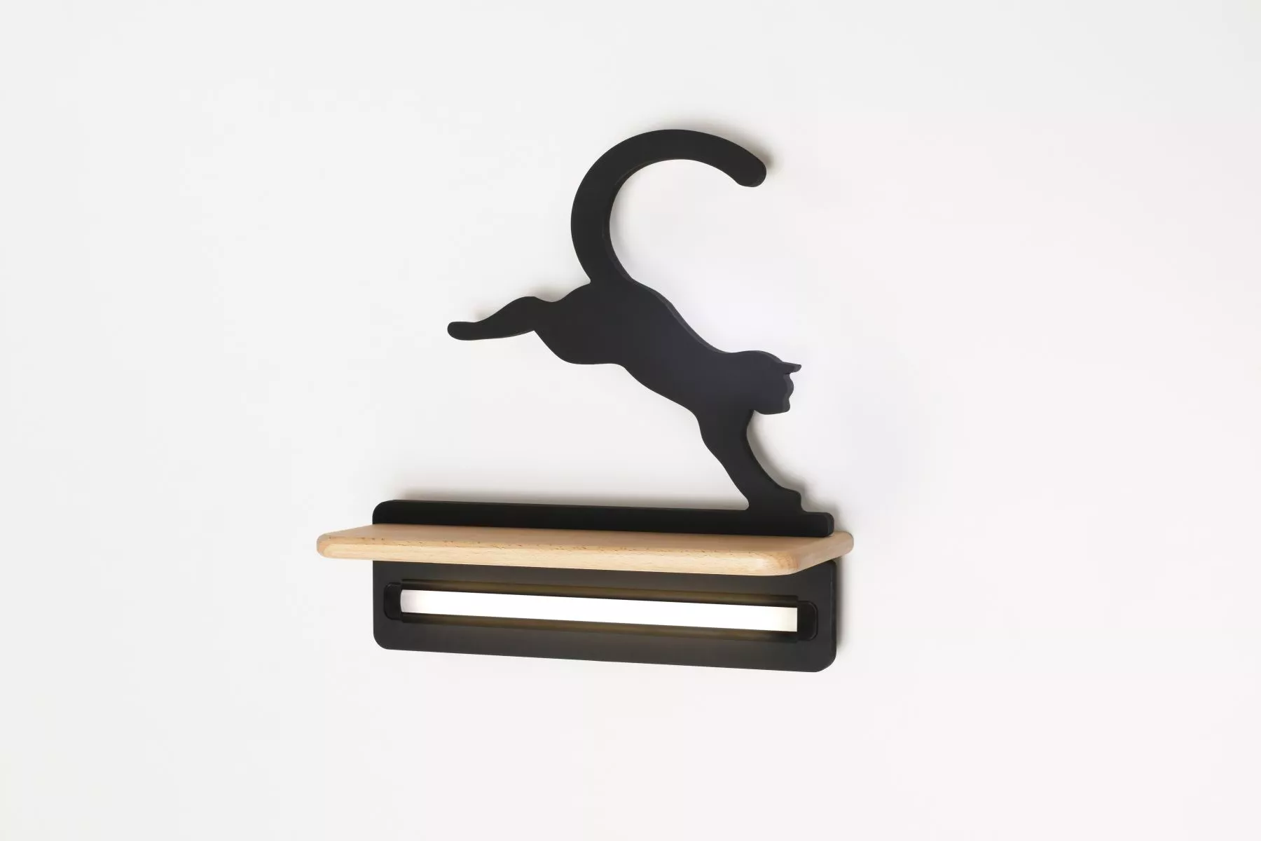 Dětské nástěnné LED světlo s poličkou CAT - 5W, 4000K (denní bílá), černé