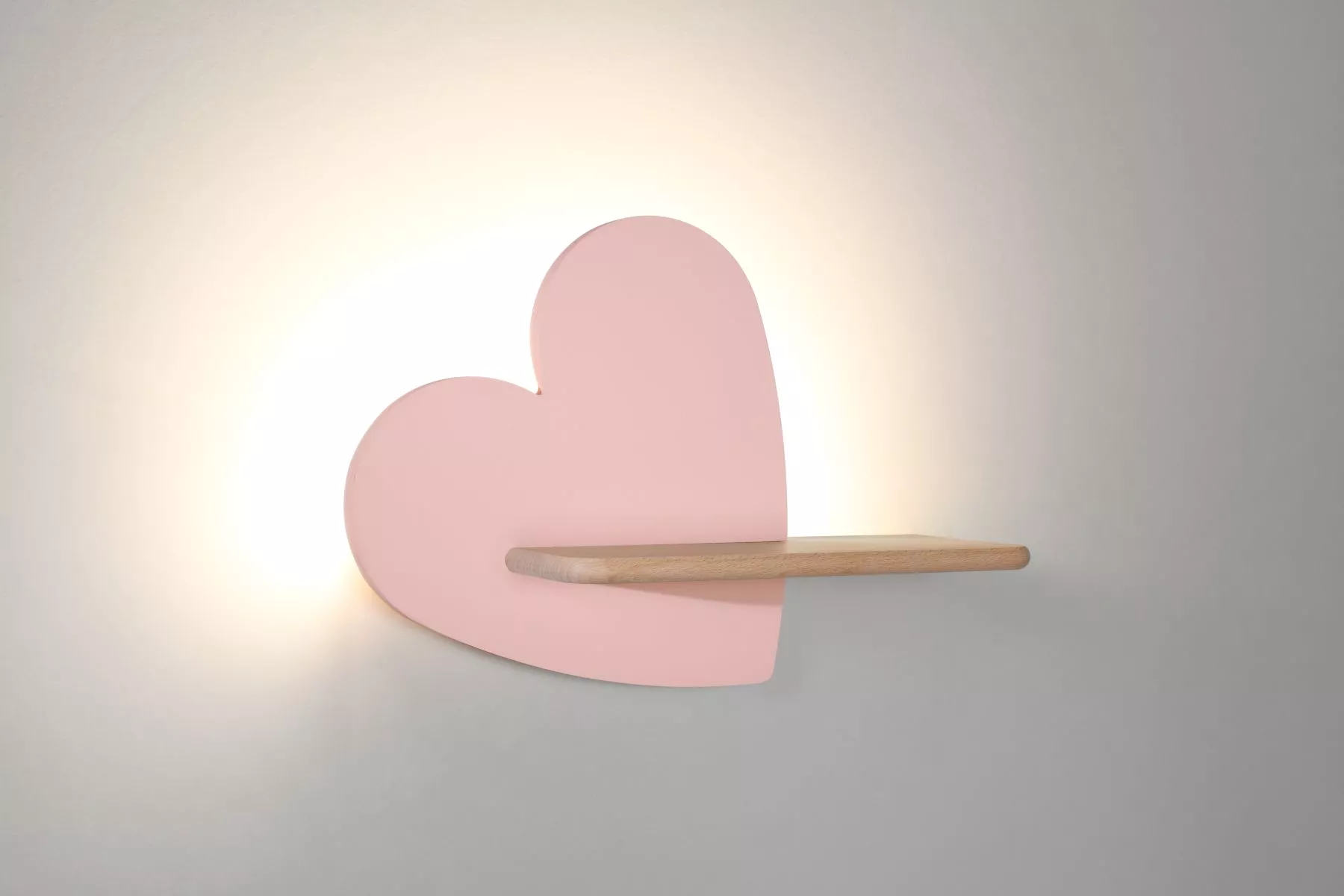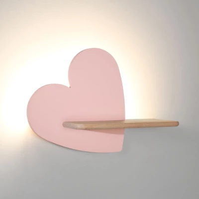 Dětská nástěnná LED lampička s poličkou HEART - 5W, 4000K (denní bílá), růžová