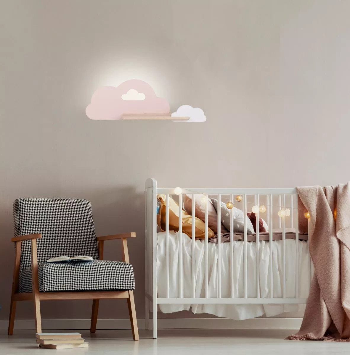 Dětské nástěnné LED svítidlo s poličkou CLOUD - 5W, 4000K (denní bílá), růžové / bílé