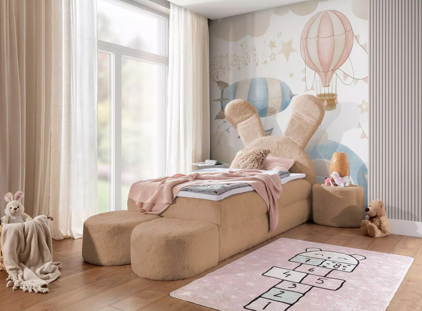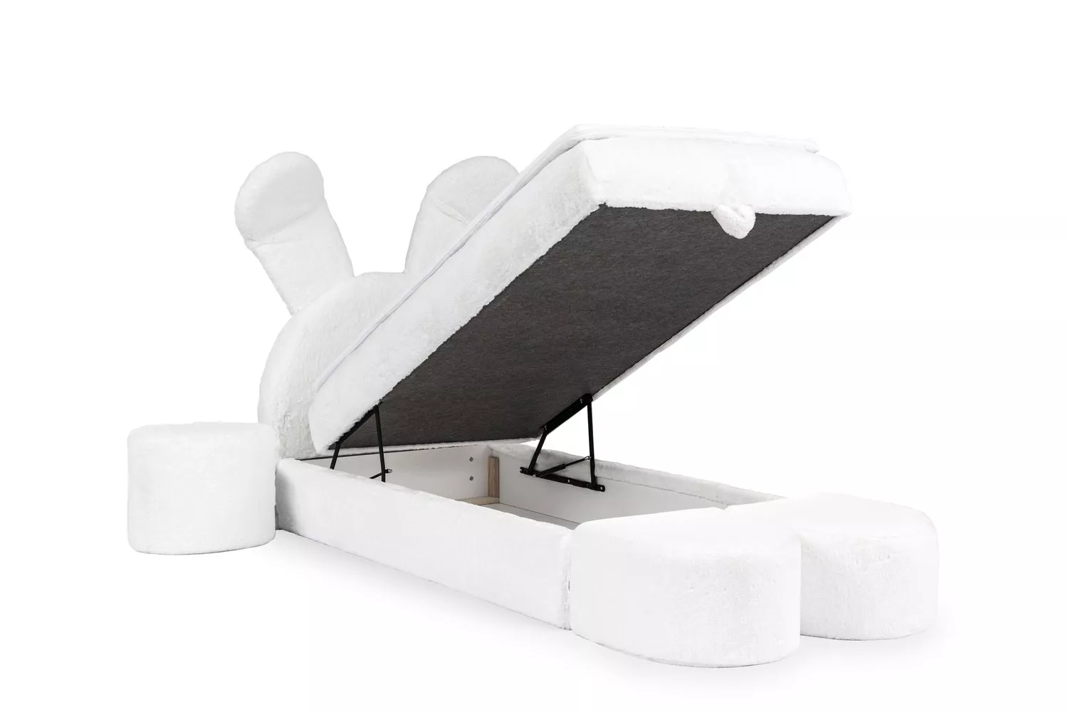 Designová dětská postel 100x200 INELA se hodí do všech dětských pokojů. Součástí postele je úložný prostor otevíraný od noh. Čalounění je příjemné na dotek.