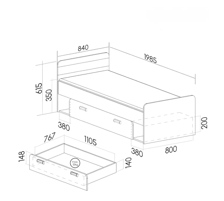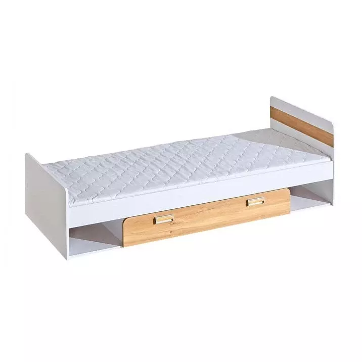 Jednolůžková postel 80x195 CEDAR se šuplíkem spojuje pohodlí, úložný prostor i moderní vzhled. Vysoké čelo poslouží jako příjemná opora při čtení nebo relaxaci. Šuplík a otevřené police nabídnou místo pro oblečení, knihy i další nezbytnosti. Jednoduchý design skvěle zapadne do dětského i studentského pokoje.