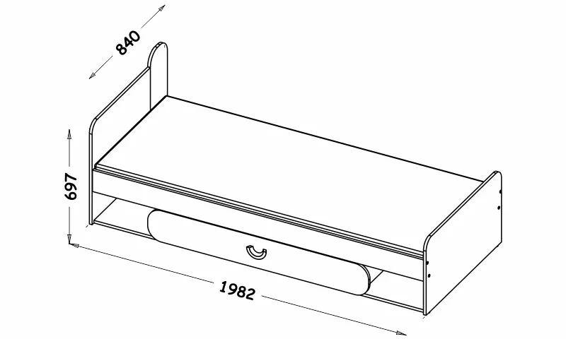 Jednolůžková postel 80x195 EDENTON se šuplíkem vnese eleganci a originální styl do dětského i studentského pokoje. Vysoké čelo poskytuje pohodlnou oporu při odpočinku i čtení. Šuplík a otevřené police nabídnou dostatek úložného prostoru na studijní materiál nebo ložní prádlo.