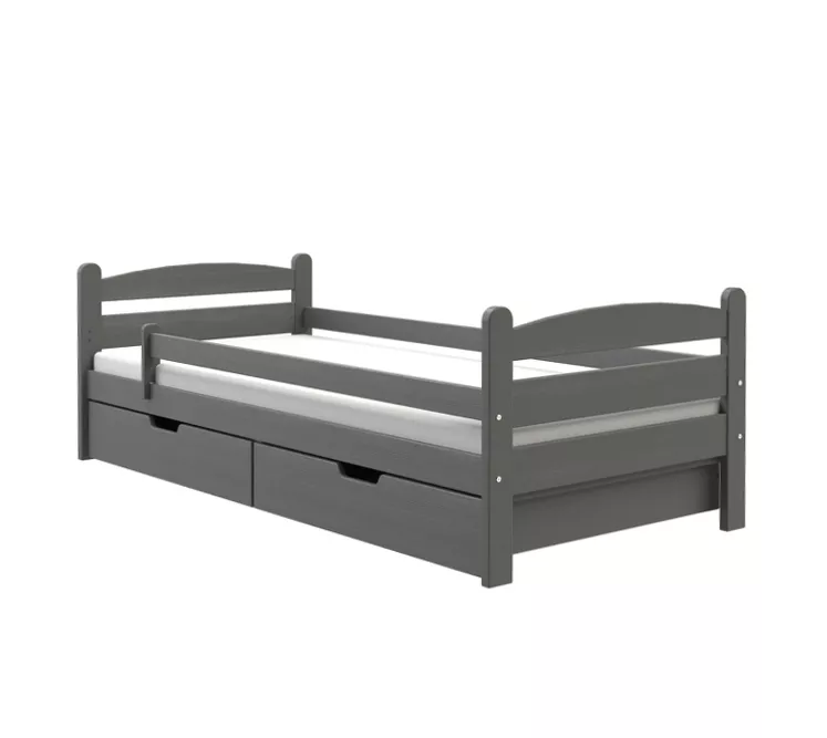 Jednolůžková postel 90x200 GASTON se šuplíky skvěle zapadne do každého dětského a studentského pokoje. Ochranné zábrany zajistí klidné noci a 2 šuplíky nabídnou místo na hračky i ložní prádlo.